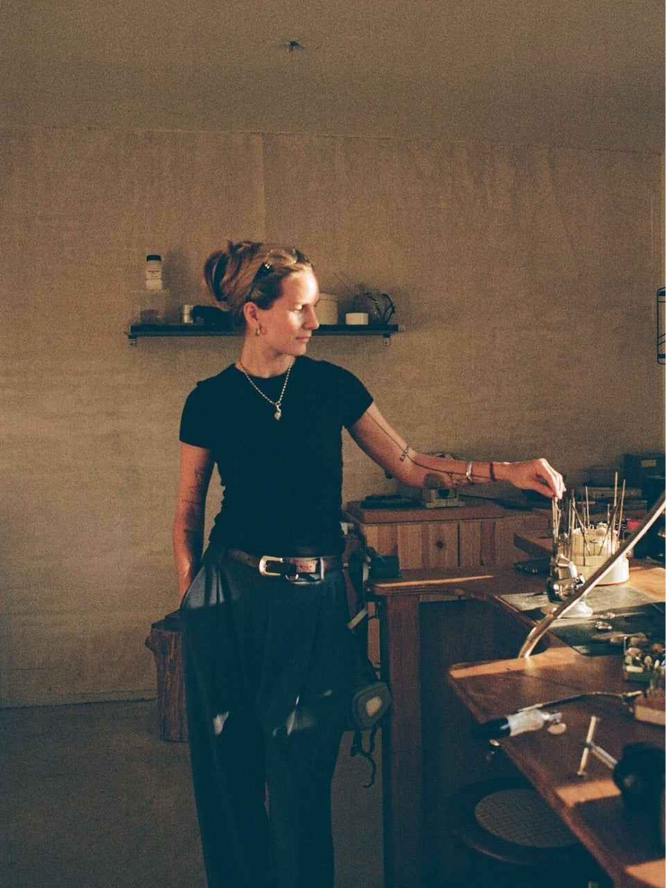Julia Lyon is the founder and maker behind comorio. She designs and handcrafts every piece herself in her Hamburg atelier.