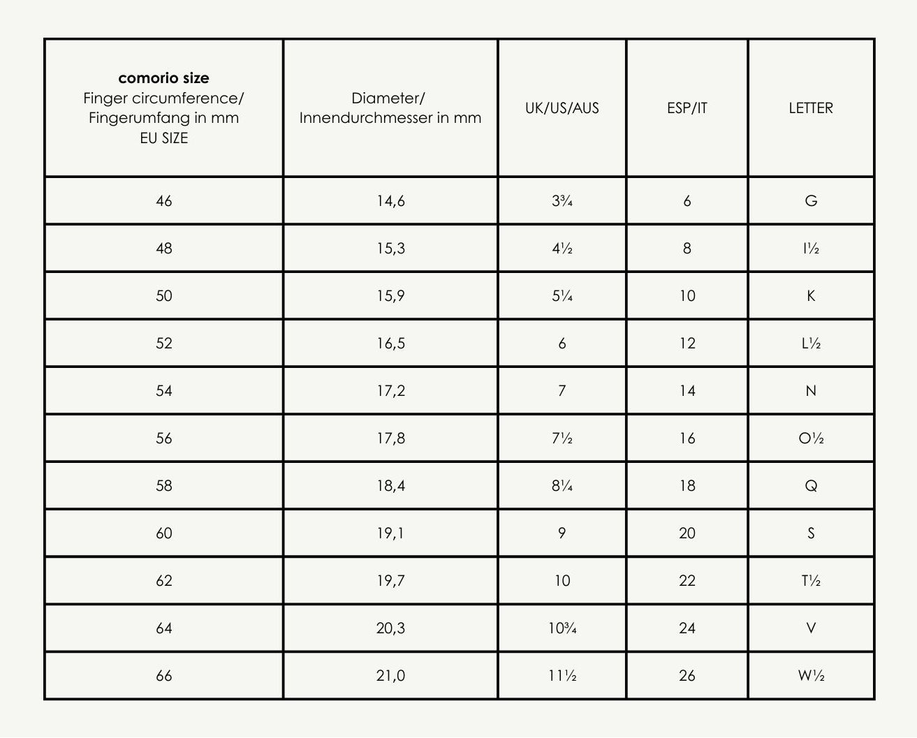 If you are uncertain of your size, please contact us at hello@comorio.com
